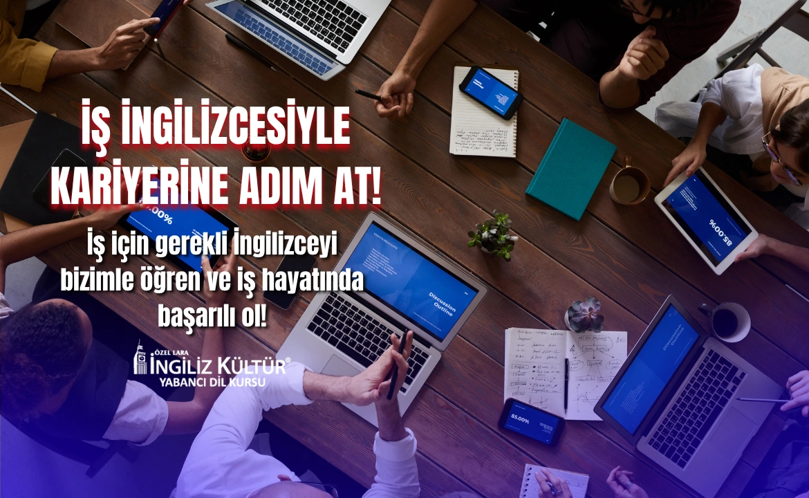 Lara İngiliz Kültür’ün İş İngilizcesi Kursu, dil eğitiminden çok daha fazlasını sunar. Burada, uluslararası iş dünyasında nasıl kendinizi ifade edeceğinizi, yazılı ve sözlü iletişimi profesyonel biçimde nasıl yöneteceğinizi öğrenirsiniz.
